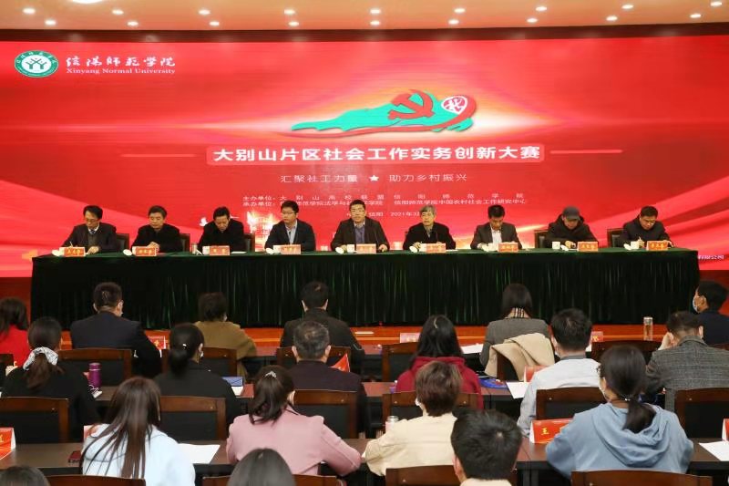 时间:2021-03-22 11:10 来源: 作者:祁中山 张玉鹏 阅读: 次为进一步提升大别山片区社会工作专业人才培养质量,强化社会工作者实务能力,推动社会工作理论教学与社会实践有机融合,助力大别山革命老区振兴发展、实现“两个更好”,3月21日,由中国社会工作教育协会、信阳师范学院主办的“汇聚社工力量,助力乡村振兴——大别山片区首届社会工作实务创新大赛”在我校举行。中国社会工作教育协会办公室主任秦小峰,民政部社会事务工作专家委员会委员、华中师范大学政治与国际关系学院教授、博士生导师陈荣卓,河南省民政厅慈善事业促进和社会工作处二级调研员陈向军,校长李俊、副校长余本海,信阳市民政局局长周强、郑州市民政局社会工作处处长王自兴,湖北工程学院、黄冈师范学院、黄淮学院等高校和郑州市馨家苑社区服务中心、信阳市祥和社会工作服务中心等社工机构参加了开幕式。37000cm威尼斯党委书记王文华主持开幕式。