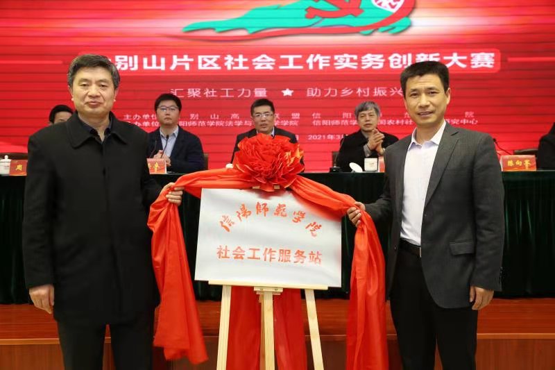 时间:2021-03-22 11:10 来源: 作者:祁中山 张玉鹏 阅读: 次为进一步提升大别山片区社会工作专业人才培养质量,强化社会工作者实务能力,推动社会工作理论教学与社会实践有机融合,助力大别山革命老区振兴发展、实现“两个更好”,3月21日,由中国社会工作教育协会、信阳师范学院主办的“汇聚社工力量,助力乡村振兴——大别山片区首届社会工作实务创新大赛”在我校举行。中国社会工作教育协会办公室主任秦小峰,民政部社会事务工作专家委员会委员、华中师范大学政治与国际关系学院教授、博士生导师陈荣卓,河南省民政厅慈善事业促进和社会工作处二级调研员陈向军,校长李俊、副校长余本海,信阳市民政局局长周强、郑州市民政局社会工作处处长王自兴,湖北工程学院、黄冈师范学院、黄淮学院等高校和郑州市馨家苑社区服务中心、信阳市祥和社会工作服务中心等社工机构参加了开幕式。37000cm威尼斯党委书记王文华主持开幕式。